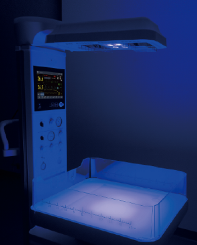 Mediante la reflexión múltiple y la combinación uniforme de haces de luz azul y blanco, el sistema Mixing-Light alivia eficazmente  la incomodidad de las enfermeras mientras operan. La aplicación de dos lentes permite que los puntos azules cubran perfectamente toda la superficie de la cama sin fugas de luz. La visualización del período de tiempo de iluminación único y acumulativo facilita a las enfermeras reconocer el tiempo de servicio de la bombilla y operarla oportunamente. Excelente rendimiento de bombilla LED con un largo tiempo de servicio de más de 50.000 horas.